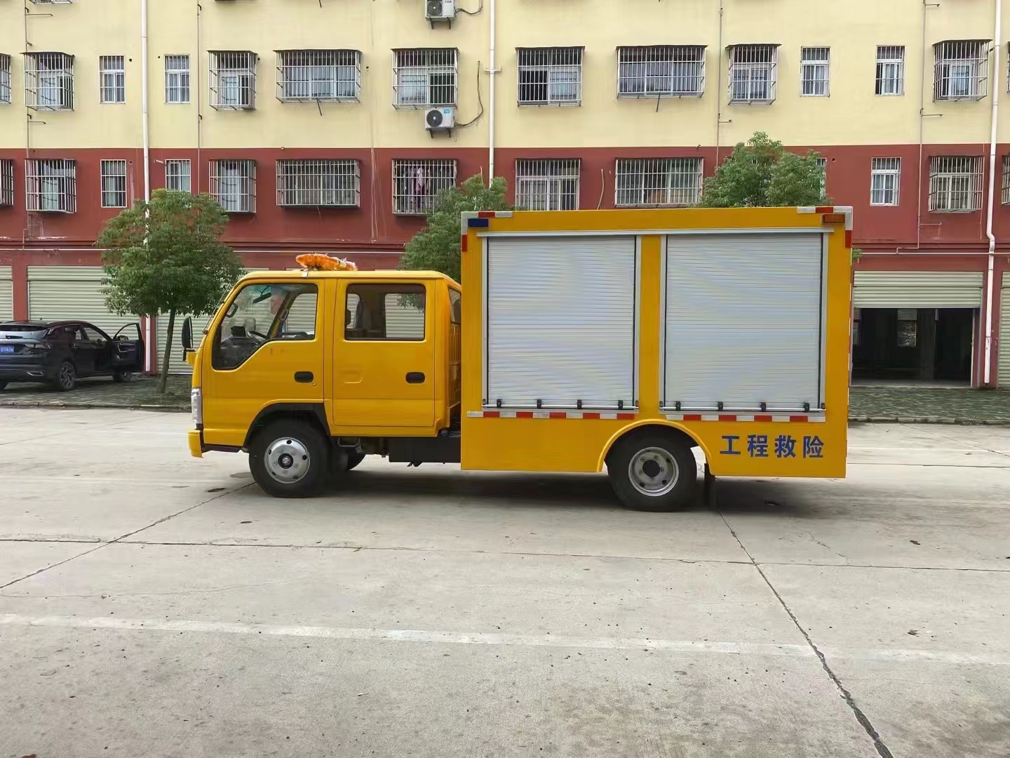 上裝配置  車(chē)箱一體式全封閉車(chē)箱車(chē)箱有隔音功能,廂體防火,阻燃,防雨,防塵,防銹,降噪,隔震,長(zhǎng)期抗震結(jié)構(gòu),廂體外觀按照公告外觀制作,左右卷簾門(mén),尾部是卷簾門(mén),廂內(nèi)安裝LED作業(yè)燈,作業(yè)燈帶獨(dú)立開(kāi)關(guān),底板采用花紋板。配備康明斯50KW發(fā)電機(jī)組,2臺(tái)功率22KW便攜式超輕型高速潛水泵,單臺(tái)水泵流量可達(dá)500m³/h,單泵配40米排水管(20米/根),水管直徑 DN200mm,水管材質(zhì)為滌綸長(zhǎng)絲編織。配有升降照明燈,升降燈可通過(guò)無(wú)線(xiàn)和有線(xiàn)遙控兩種方式控制,升降燈升降高度為1.2米,可水平旋轉(zhuǎn)。帶接地樁和接地電纜線(xiàn),便攜泵控制柜,潛水泵浮圈,長(zhǎng)排警燈,倒車(chē)影像,配兩只手提式干粉滅火器2只。其余為標(biāo)配…