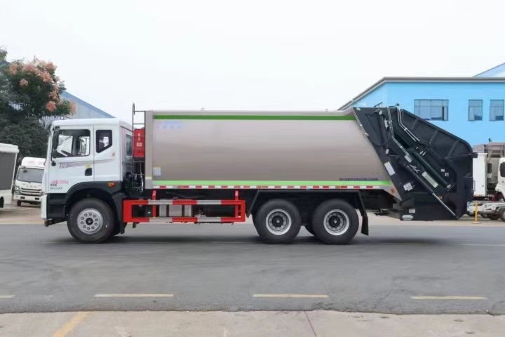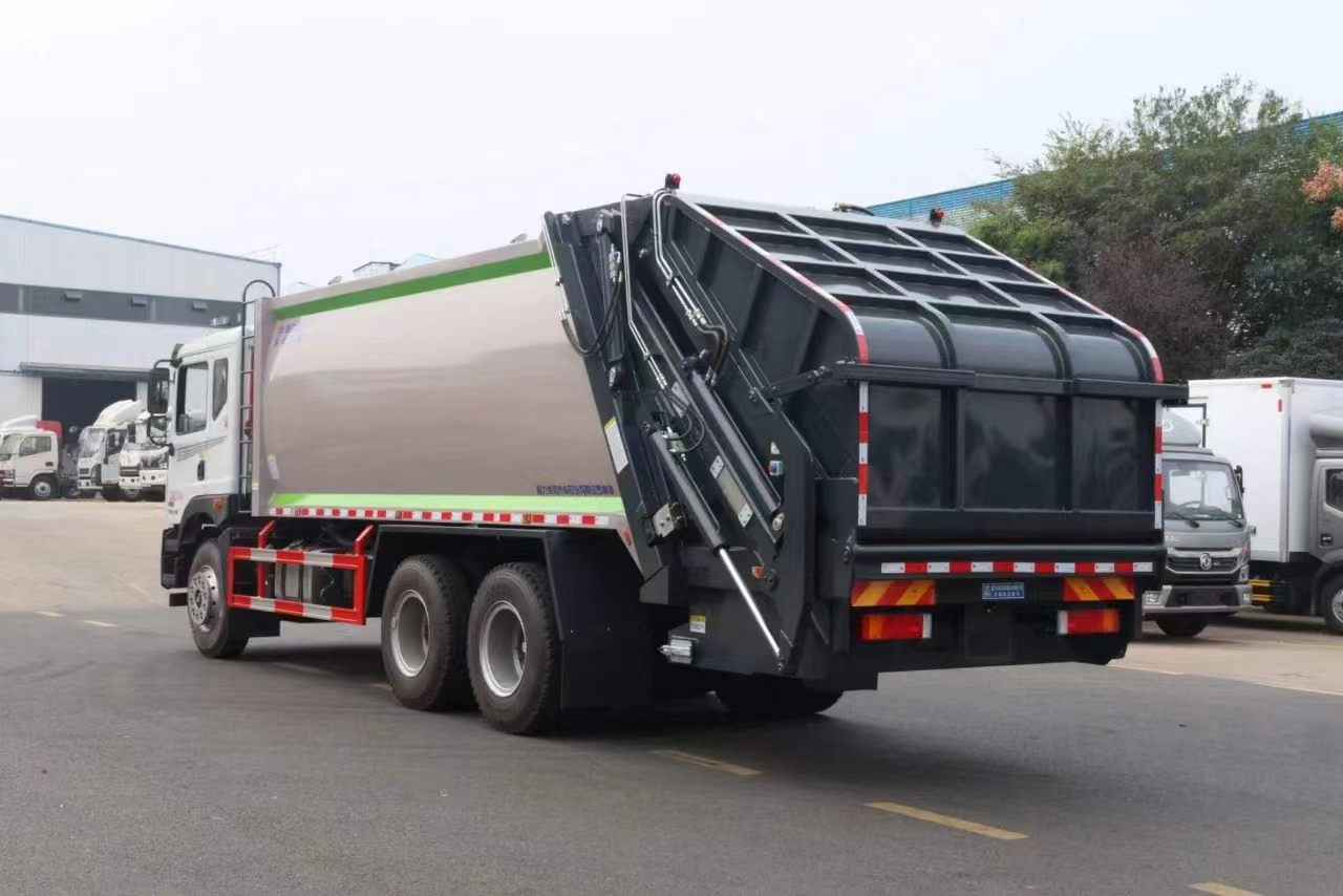 上裝配置 新款弧形箱體,箱體容積加大約22立方,箱體為優(yōu)質(zhì)高強(qiáng)度Q345錳鋼制作,底箱及填充器采用加厚鋼板,耐腐蝕使用壽命長(zhǎng),三層油漆噴涂處理/電泳工藝。裝載循環(huán)以及垃圾排出時(shí)間快,上裝部分具備雙向壓縮和蠕動(dòng)壓縮功能帶。新款結(jié)構(gòu)加大填充器,手電一體操作模式,帶駕駛室操作,帶駕駛室一鍵卸料功能,尾部裝置可以選裝垃圾翻轉(zhuǎn)斗,掛桶翻轉(zhuǎn)板或者大落地斗。PLC/CAN總線控制方式,光電開(kāi)關(guān)加延時(shí)雙系統(tǒng)控制,降低故障率,方便維修。帶夜間照明裝置,帶污水箱,標(biāo)配選用:定制油缸(質(zhì)保兩年),中梅多路閥,液壓油泵(雙泵雙閥),帶液壓散熱器,嘉善取力器。