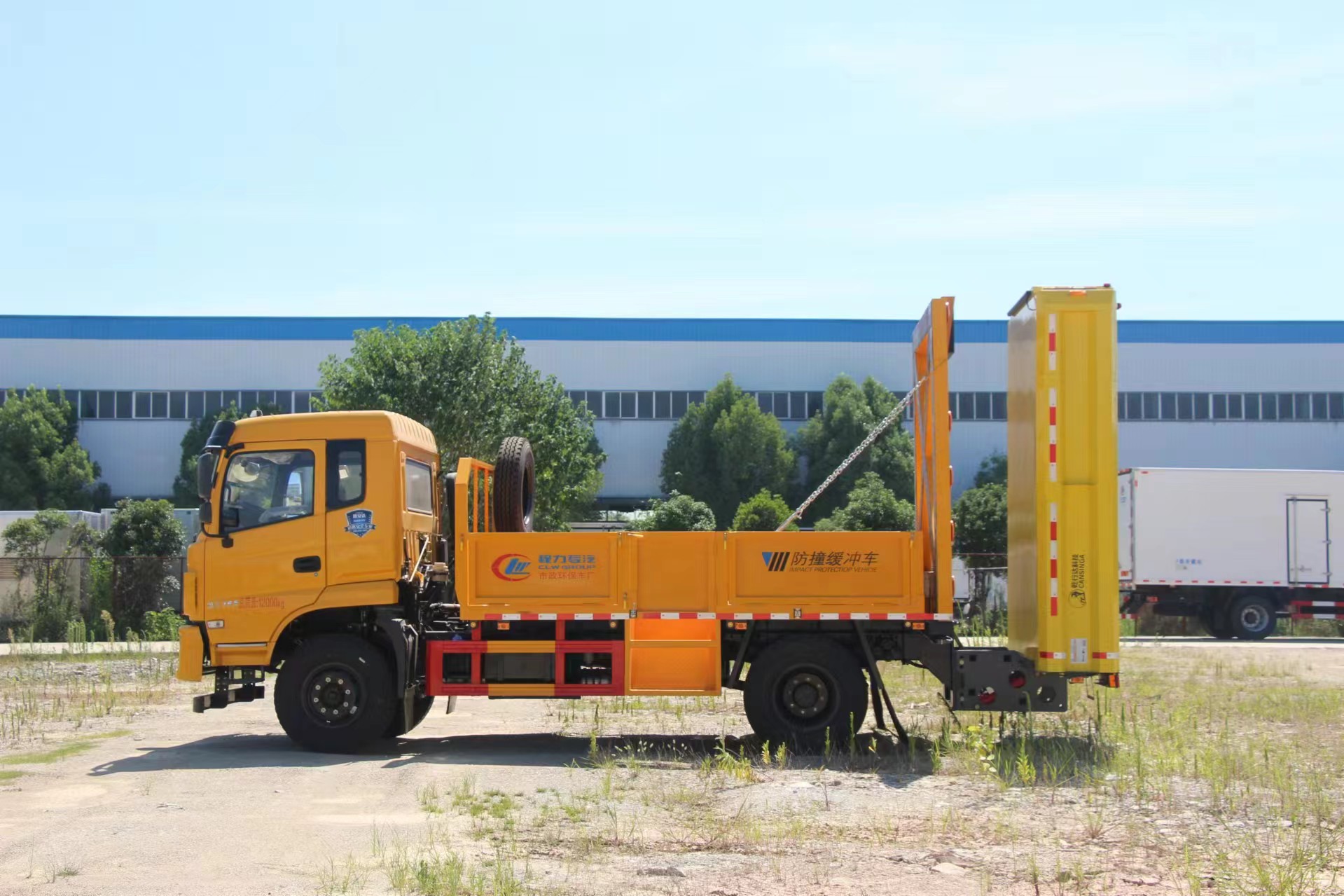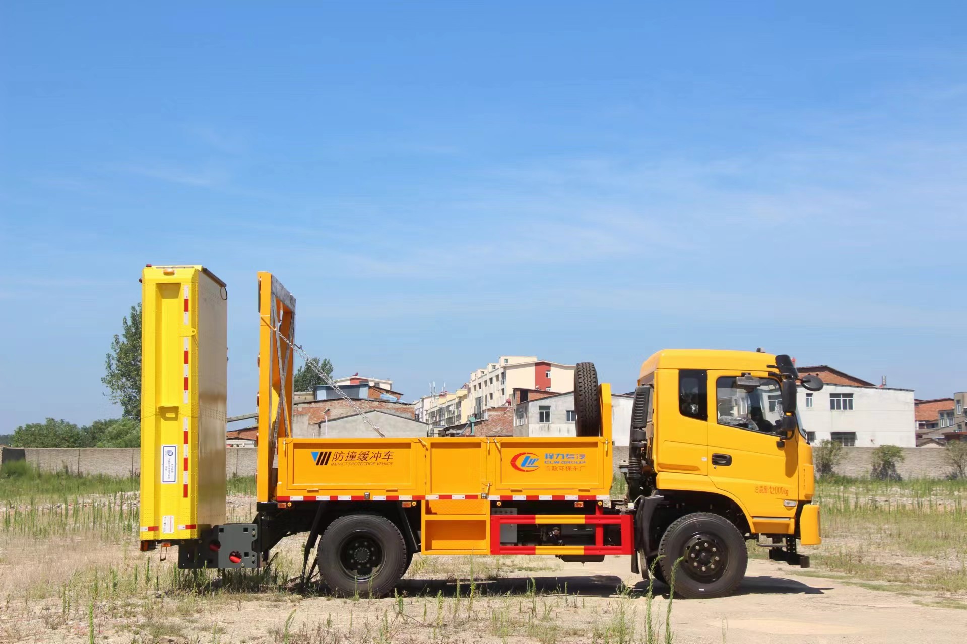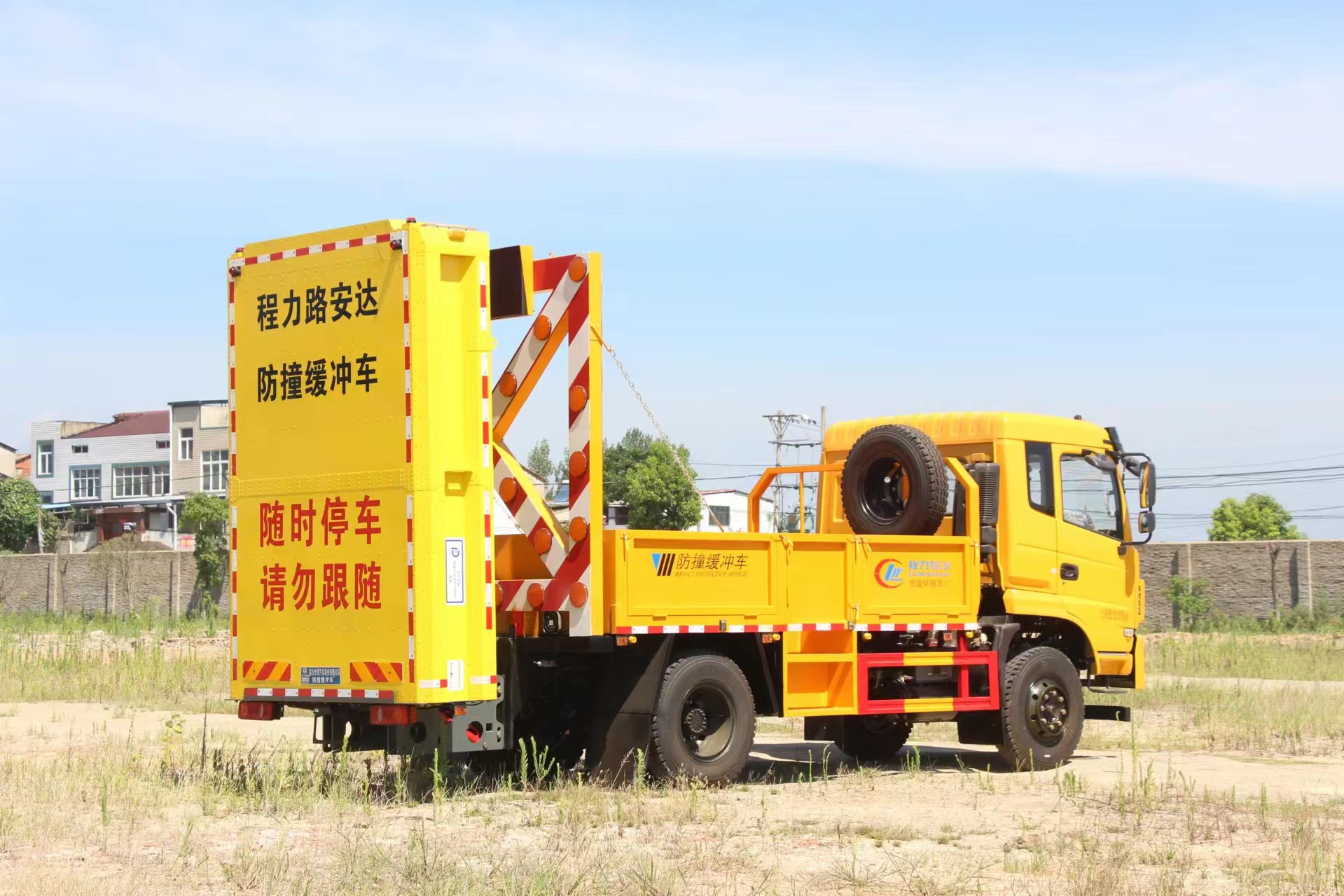 上裝配置 采用Q235國標邊3mm底板花紋板4mm厚,箱體后部防撞緩沖模塊包采用國際知名技術(shù)產(chǎn)品100E防撞緩 沖模塊,防撞緩沖吸能模塊主要由車載防撞緩沖墊和導(dǎo)向標志架組成,充當施工作業(yè)車輛后方的緩沖衛(wèi)士。 如若發(fā)生追尾事故,能夠在肇事車輛和前方施工作業(yè)區(qū)域之間構(gòu)建一個緩沖區(qū)域,通過機具結(jié)構(gòu)變形吸收撞 擊的能量,最大限度地降低被保護人員及設(shè)備遭到碰撞的幾率。高性能液壓系統(tǒng),可實現(xiàn)快速舉升和落下操 作,方便設(shè)備運輸轉(zhuǎn)場,一鍵啟動功能,舉升和落下防撞裝置,當防撞裝置未完全落下到工作位置或舉升到 垂直運輸位置時,會有自動警告音提示。