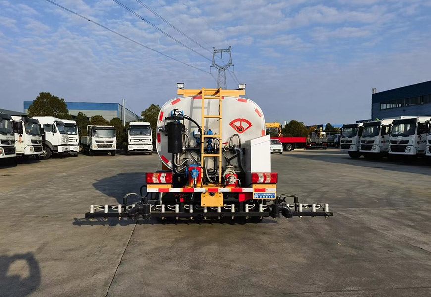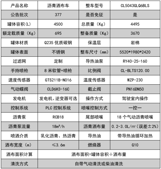 該車(chē)廣泛應(yīng)用于修筑高等級(jí)公路瀝青路面灑布作業(yè),主要專(zhuān)用裝置瀝青罐體,瀝青噴灑系統(tǒng),罐體總?cè)萘?0.81立方米,有效容積:0.77立方米,罐體外形尺寸(長(zhǎng)×寬×高)(mm):2350×1800×1350,介質(zhì):液態(tài)瀝青,密度:900千克/立方米;罐體保溫層厚度為355mm;側(cè)防護(hù)材料采用鋁合金,螺栓連接;后防護(hù)由專(zhuān)用裝置代替,下邊緣離地高360mm;ABS型號(hào)/廠家:CM4XL-4S/4M/廣州瑞立科密汽車(chē)電子股份有限公司;后部安裝工作燈,僅在夜間駐車(chē)狀態(tài)下起照明作用,行駛過(guò)程中不可點(diǎn)亮。外形長(zhǎng)與前懸/軸距/后懸(mm)的對(duì)應(yīng)關(guān)系為:5520/1100/2850/1570,5520/1075/2950/1495。隨底盤(pán)選裝駕駛室,選裝底盤(pán)附件儲(chǔ)氣筒尿素罐安裝位置。