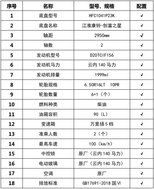 車(chē)輛主要配置