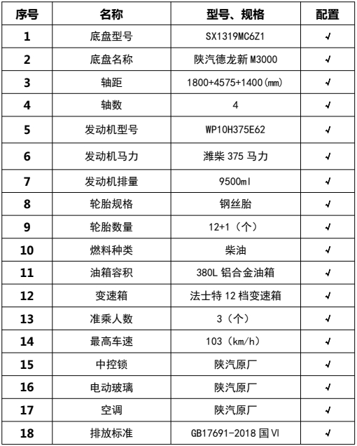 僅用軸距(mm):1800+3775+1400,1800+3975+1400,1800+4575+1400,該車為路面同步碎石封層專用車輛,主要專用裝置為瀝青罐,碎石箱及灑布系統(tǒng).側(cè)防護(hù)材料鋁合金,采用螺栓連接,后防護(hù)為專用裝置代替,下緣離地高450mm,ABS系統(tǒng)生產(chǎn)廠家及型號分別為:西安正昌電子股份有限公司(ZQFB-V);后部照明燈僅在駐車狀態(tài)下使用,起夜間照明作用,行駛過程中不可點(diǎn)亮。隨底盤選裝駕駛室。