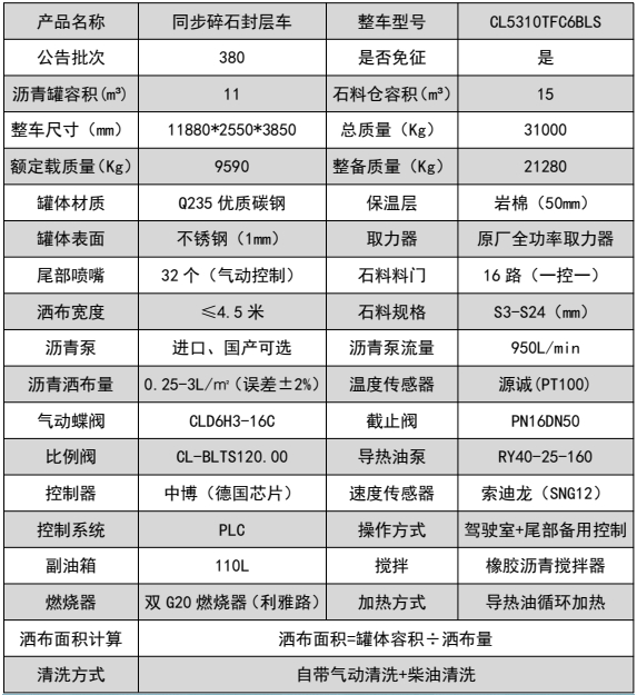 ??????湖北程力汽車:程力CL5310TFC6BLS型陜汽德龍前四后八瀝青碎石同步封層車產(chǎn)品型號及參數(shù)配置,程力CL5310TFC6BLS型陜汽德龍前四后八瀝青碎石同步封層車高清圖片,程力汽車系列程力CL5310TFC6BLS型陜汽德龍前四后八瀝青碎石同步封層車最新報價請撥打客服熱線。車輛主要配置 產(chǎn)品商標(biāo) 程力牌 公告批次 382(擴(kuò)展) 產(chǎn)品名稱 同步碎石封層車 產(chǎn)品型號 CL5310TFC6BLS 總質(zhì)量(Kg) 31000 罐體容積(m3) 額定載質(zhì)量(Kg) 9590,9525 外形尺寸(mm) 11080,11280,11880 × 2550 × 385...