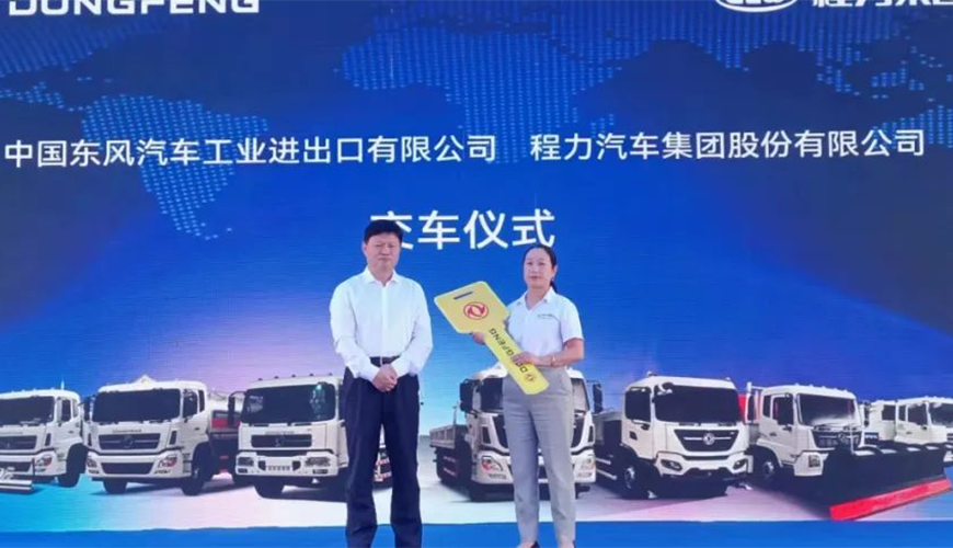 5月27日上午,陽(yáng)光明媚晴空萬(wàn)里,在風(fēng)景如畫(huà)花園式的程力新廠底盤大樓廣場(chǎng)上,程力汽車集團(tuán)與中國(guó)東風(fēng)汽車工業(yè)進(jìn)出口有限公司,聯(lián)袂舉行了一場(chǎng)隆重而又別開(kāi)生面的“深耕專用車,攜手共出海”商用車新產(chǎn)品大型推薦會(huì)。