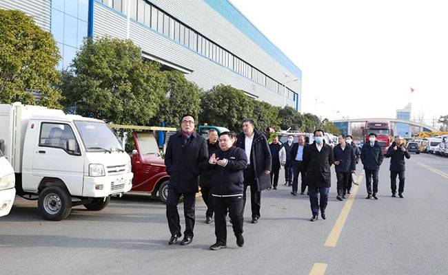 王志才總經理一行領導及負責人,不畏凜冬寒冷,先后步行參觀程力(曾都)汽車工業(yè)園、程力南郊汽車裝備制造工業(yè)園兩大基地。來賓們看產品、下車間、問工藝,無一不細致入微,調研考察工作扎實認真高效。