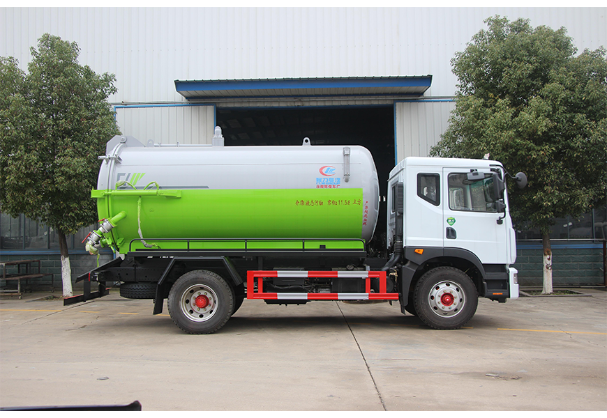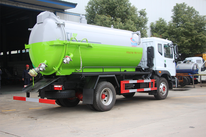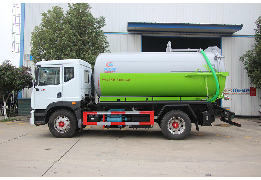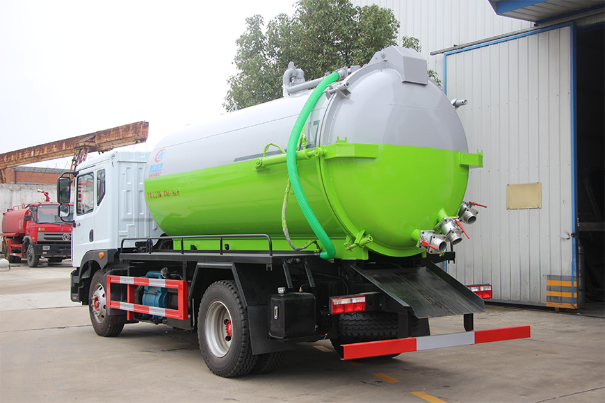上裝配置 污罐:Q235武鋼6MM厚碳鋼板,標(biāo)配采用億豐SK-12水循環(huán)泵。防溢閥,視糞管,配一根8米吸污管,罐體封頭一次壓鑄成型、罐體帶舉升,后蓋為液壓開(kāi)啟。罐內(nèi)污物可通過(guò)后蓋直接傾倒,具有真空度高、噸位大、效率高、用途更廣泛的特點(diǎn)。
