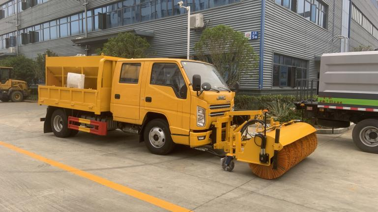 上裝配置 箱體尺寸2600*2060*400mm,箱體內(nèi)裝 3立方融雪撒布機(jī),撒布機(jī)采用 V 型料倉,結(jié)構(gòu)簡(jiǎn)單可靠,使融雪劑自動(dòng)落料,出料完全,無殘留。駕駛室可加裝2米除雪鏟或者2米除雪滾。