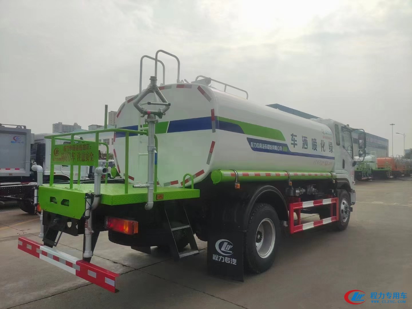 | 上裝配置 | 上裝武鋼優(yōu)質碳鋼板,容積12立方,厚度4mm,封頭5mm,前后封頭機器人自動焊,內設隔浪板,帶液位計, 配程力原廠大功率灑水泵,帶駕駛室電控操作,前沖后灑4個新式不銹鋼切斷閥,前沖 后灑 側噴 后高炮,后高炮可調節(jié)柱狀 雨狀和霧狀,新式?jīng)_孔工作平臺,主管道加粗,副管道全采用優(yōu)質鍍鋅管道,帶自吸自排,自流閥,消防接頭,過濾裝置,邊燈帶電,其他標配… | ||